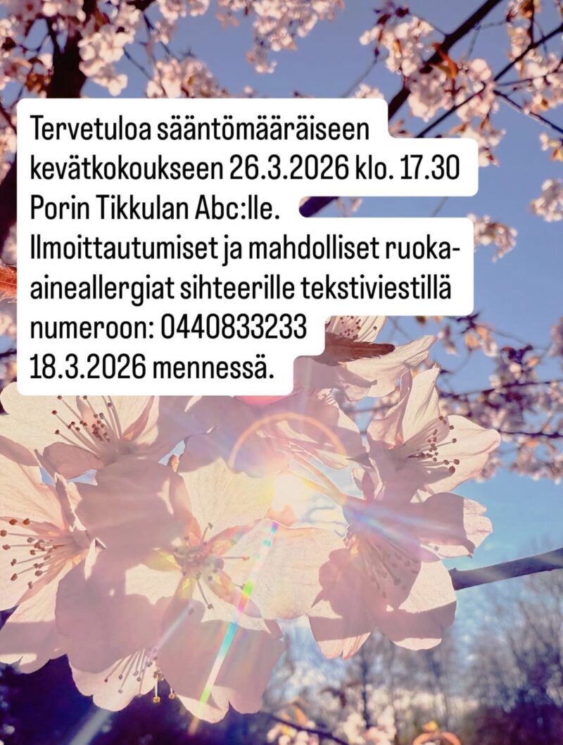 Voit ilmoittautua tapahtumiin ja kokouksiin lähettämällä tekstiviestin sihteerille puhelinnumeroon: 0440833233. Ilmoittautuessasi muista mainita nimesi, mihin tapahtumaan osallistut ja mahdollisesti muut mukanasi tulevat henkilöt, jos tilaisuus sellainen on. Mahdolliset maksut tapahtumista suoritetaan Superin Porin seudun yksityisen ammattiosaston 650 tilille: FI5657008120138529.